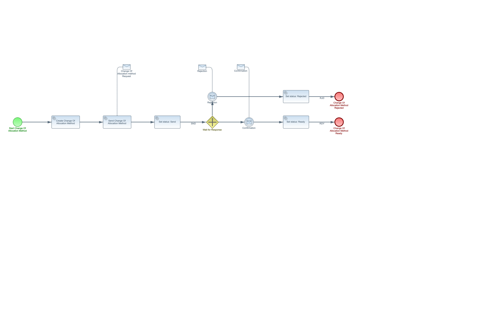 EDSN validates the request (see EDSN validations). If there are inaccuracies, the message is rejected otherwise an update is send via an XML response: ChangeOfAllocationMethodResponse.