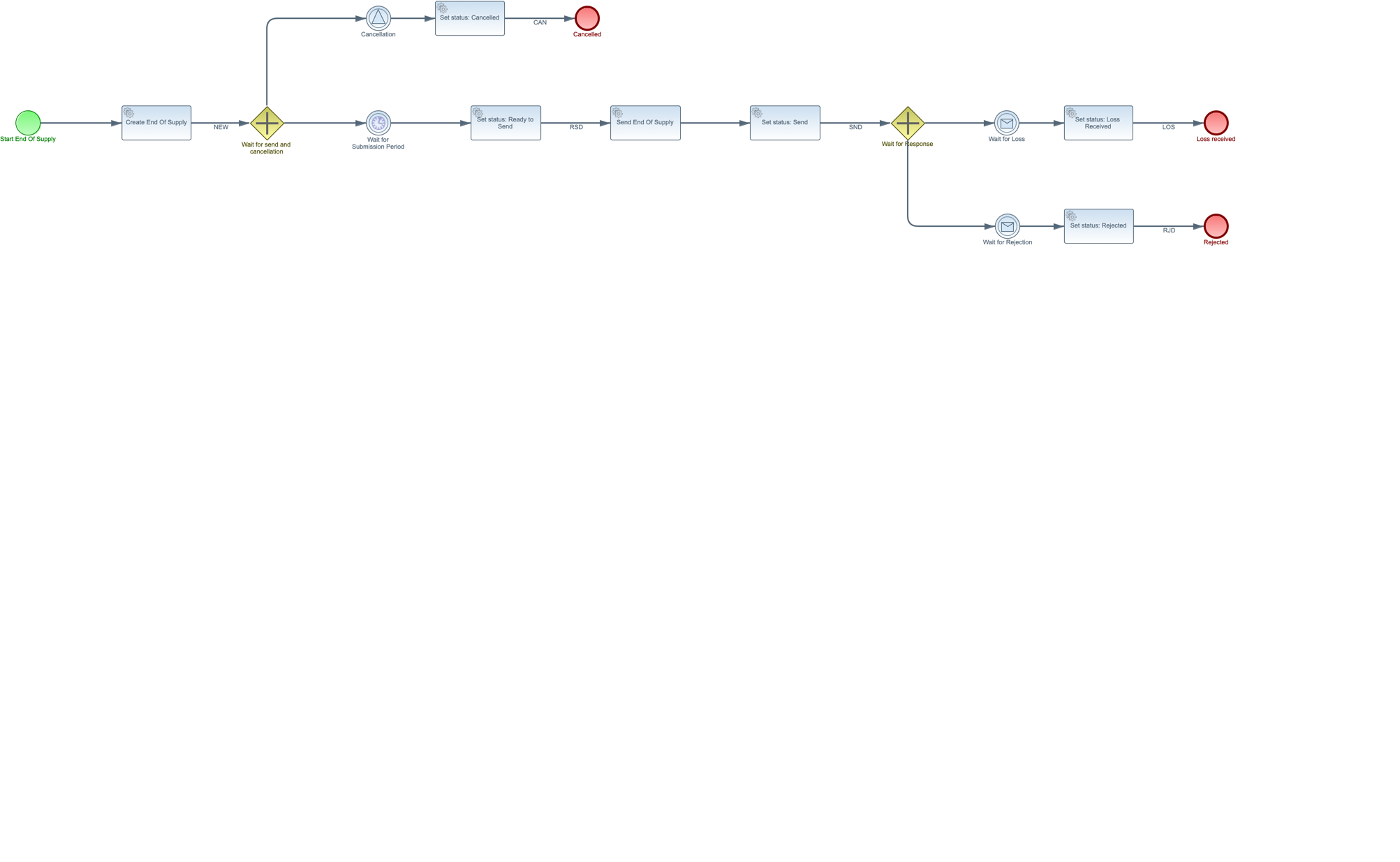 The End of Supply process is used by the current supplier to terminate its supply on a connection, with the customer’s disposition over the connection continuing. The conditions of the “Regulation on the termination policy for small consumers of electricity and gas” apply to this process.