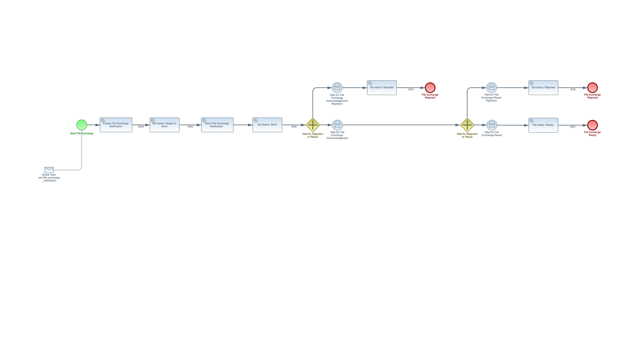 The recipient validates the received file. If there are inaccuracies, the file is rejected otherwise a confirmation is send via an XML response: FileExchangeResultResponse.