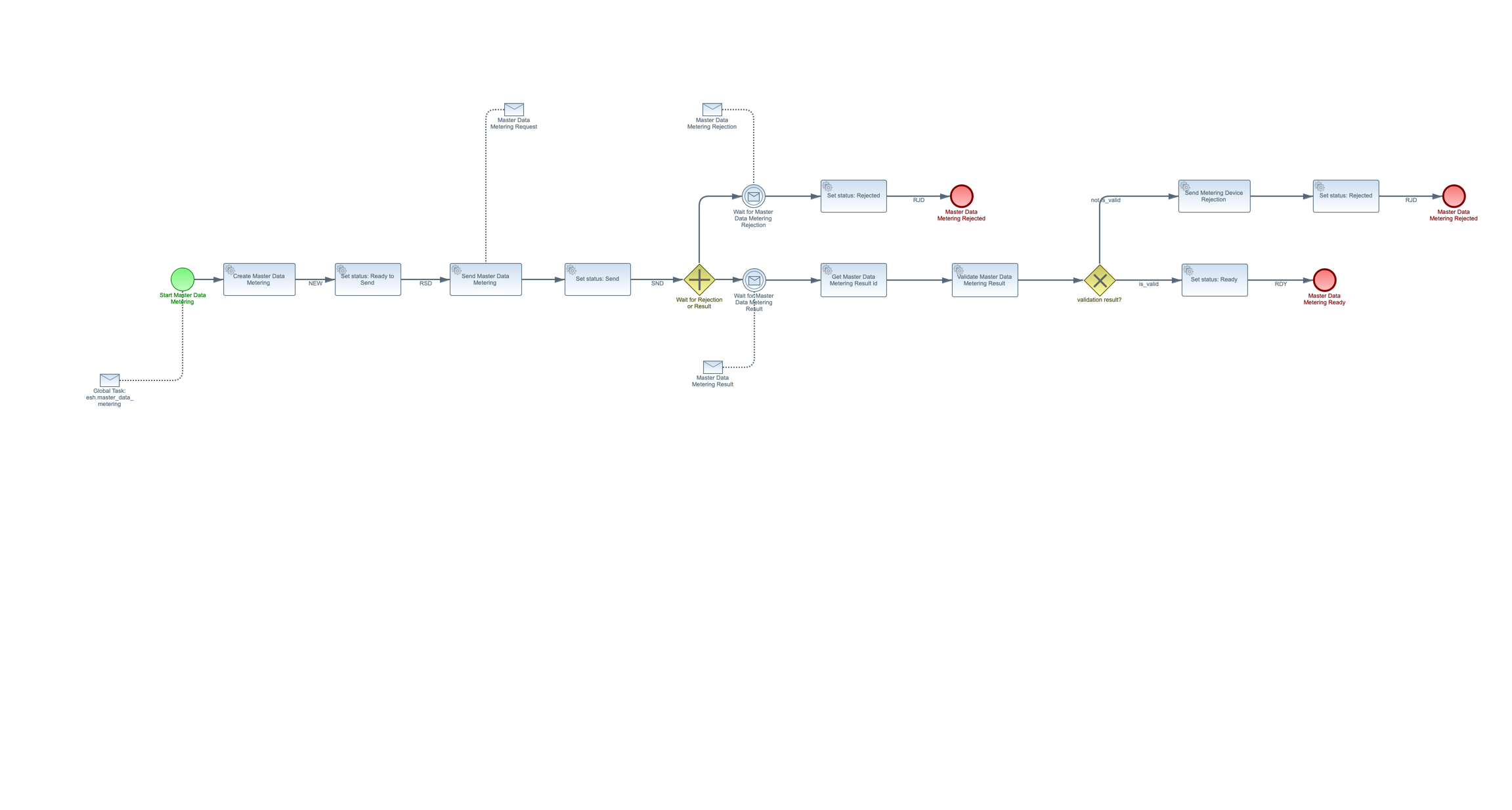 The Metering Responsible validates the request (see Metering Responsible validations). If there are inaccuracies, the message is rejected, otherwise the master data metering result is returned.